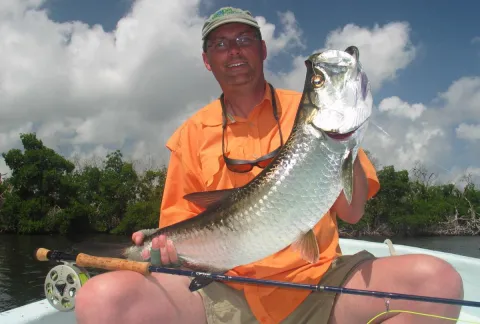Fishing for large tarpon on the fly. The bright and feisty Megalops.