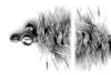 These eyes are actually quite easy to make, but can tease a bit if you want to do them both on the same piece of monofile -- which is the neatest way to do things.