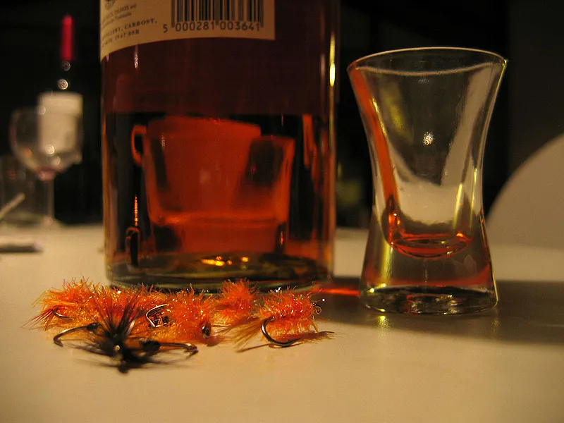 A cozy evening home: flies and a good scotch