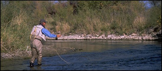 For whatever reason, either due to your newly acquired skills, a fish feeding frenzy, blind luck or a combination of all these, you finally have a fish on the end of your line for the first time in your fly fishing career. If you are with a friend, spouse or guide, they might ask themselves who caught who in all your joy and excitement as you quietly say a quick prayer that this fish won't get away. The most common mistake beginners make when they hook a trout large enough to pull back and break off is by not giving them line. A trout will expend most of his raw power and strength in the first five seconds after he's been hooked. By not giving him line and "locking up on him", he'll either throw the hook or break the leader and swim away like it never happened.