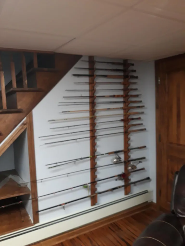 Recently finished my fly tying/rod building room. rod rack is now full and more reels added.