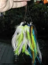Your flies need to be large a gaudy. Any colorful fly that adds up to about 10 centimeters (4") will tease a pike. I had lots of succes with the Valeur Pike Streamer on this particular day, spreading bronze and copper flash straws all over the Swedish archipelago as the pike slowly shredded the flies. My other succesful pattern was a Splayed-A-Live Pike Fly of my own construction - much like a Seaducer or a Stu Apte tarpon fly. Any color is likely to work, but my success was with a white variation that took two or three of my five to six pike that day. Large Bunny flies are good too as are large muddlers, but try to keep the amount of material down - especially the types that pick up a lot of water. They add a lot of weight to the fly once it has been fished for a while.