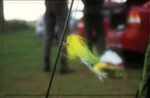 Because of the toothiness of these monsters you also need a shock or bite tippet. This can be very heavy monofilament, special braided and coated pike wire or straight piano wire. I personally prefer the latter, but your milage may vary. The advantages of the straight wire is its sturdiness. It will rarely bend or curl, and definitely not be marred by the pike's teeth. I attach the bite tippet with an Albright knot, but loops and Trilene knots will do well too. The only disadvantage of the piano wire is the need for tools to make the loops. On the other hand the coated wire has the same drawback - you need at least a sturdy cutter and a lighter for melting the coating together. The only really hassle free bite tippet - in that respect - is the heavy monofilament, but it is not as durable as the other types.