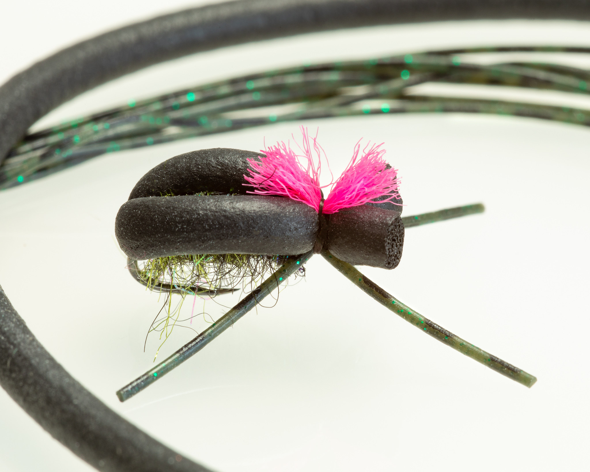 Body 3mm black neoprene foam cord, black vicuna dubbing and green SLF
