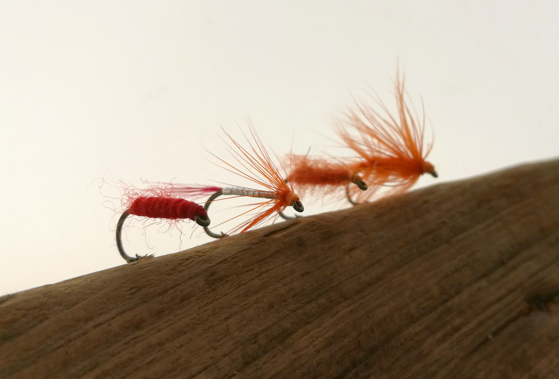 | Tail | Orange hackle fibers |