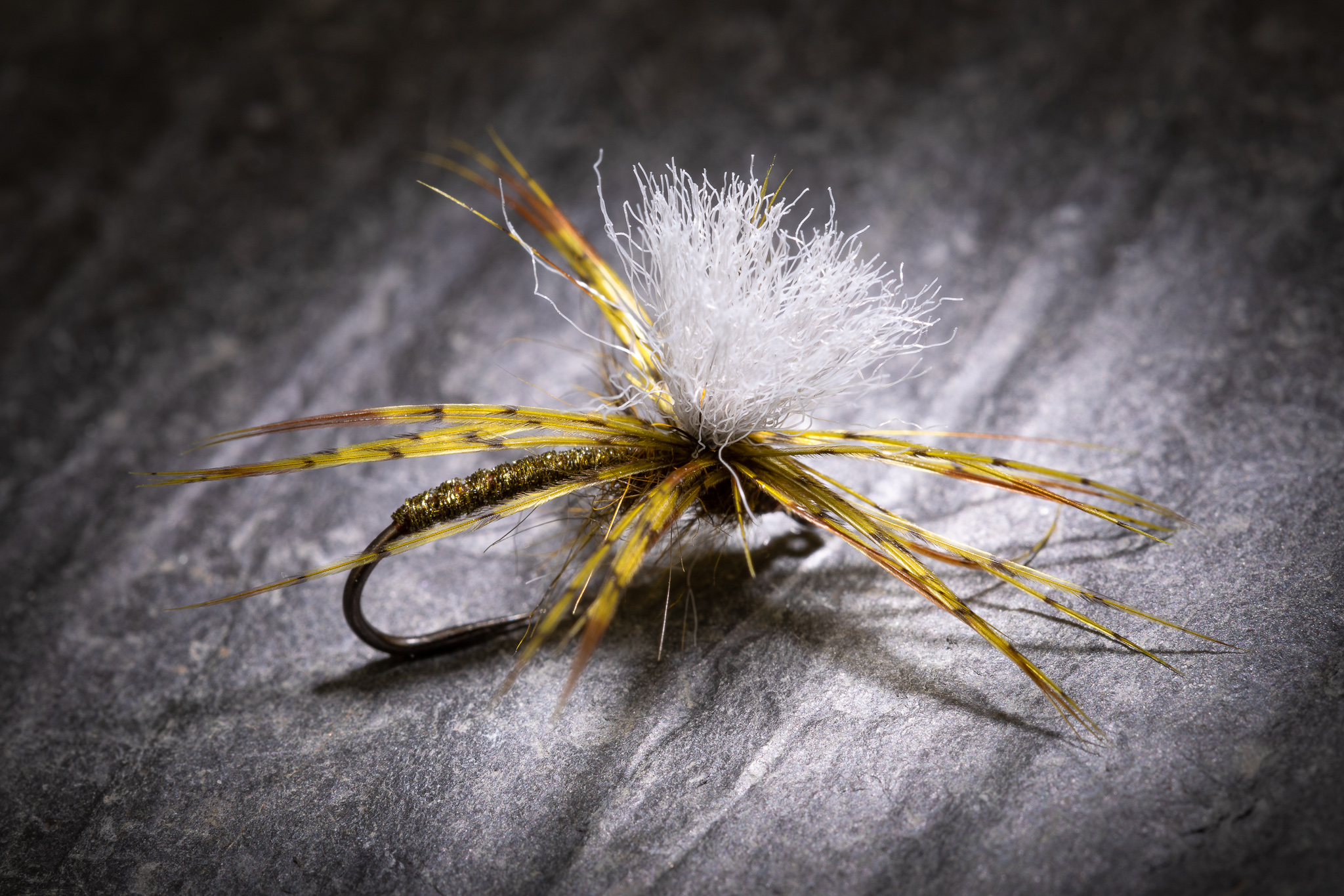 9. Remove the hackle pliers and snip off the tip of the feather. Fold back the post and hackle and add some dubbing to complete the thorax.