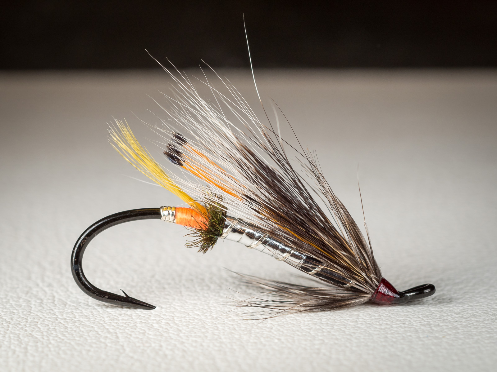| Body | Rear two thirds, flat silver tinsel, front third black floss |