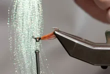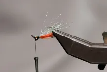 In some later variations of this pattern I have opted for the just as useful peacock herl, which in my eyes adds to almost any saltwater fly and is a natural choice for this type of fly. I simply pluck a couple of herls in bits to get the right length of wing.