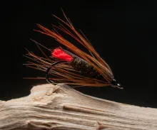 I sometimes palmer the fly with a full body hackle and even use two hackles: one for the body and one for the front. I don’t add many other materials, but have seen Red Tags for the Danish coast with all kinds of flash and even fancy colors. My good friend Henning Eskol has often tied one, which has flash in the tail and a grizzly body hackle.