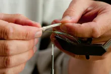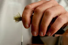 The tail and body is pure flash: flash straws and mylar tubing. The messy front is a body hackle and a large deer hair head. Unlike my usual muddlers, this head is neither stacked or trimmed. I cut the deer hair to a suitable length - about 1/2 an inch or about 1-1.5 centimeters. This will result in a large and bulky head.