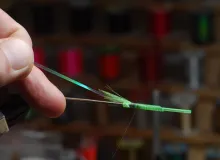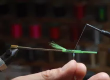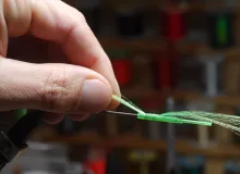 This technique is very useful for all hair winged flies. Splitting the wing into typically three sections not only makes it easier to tie it in, but also enables you to form a nicer and better tapered wing. You can use different colors for each section and the technique makes it possible to add flash and hackles in the wing - between the sections. The method is not only for tube flies, but can of course be used on hooks too.