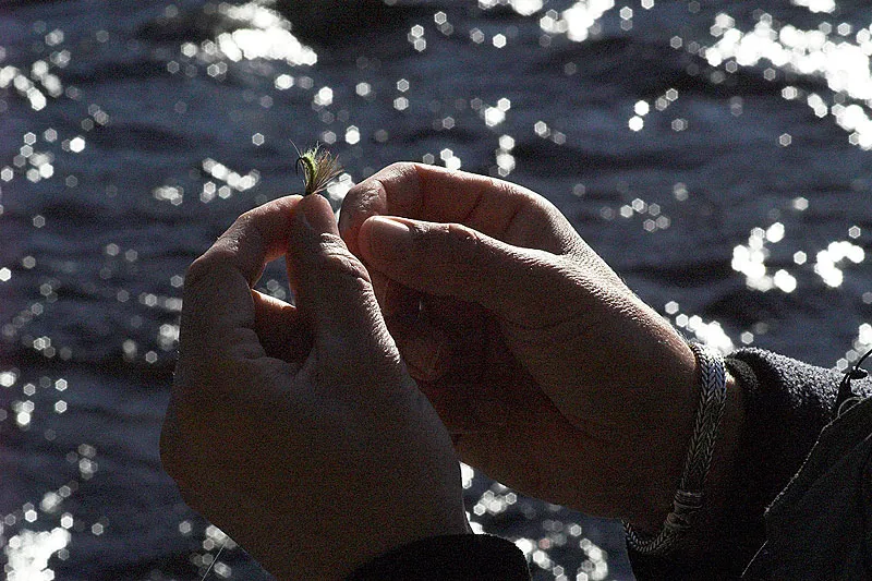 Tie on a generic fly like a good caddis pattern already before entering the water