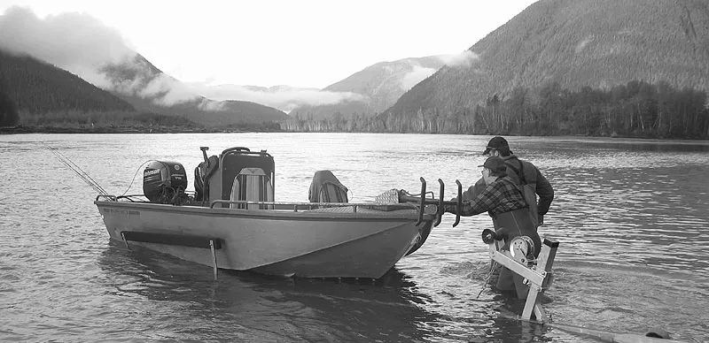 Fellow angler Ken from Vancouver and our guide Gill McKean from the Westcoast Fishing Adventures launching the boat into the Mighty Skeena.