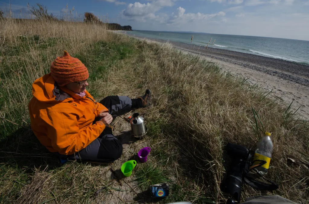 There are worse things to do than boiling water for tea with your beloved wife on a beautiful beach