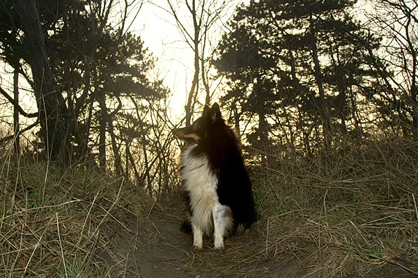 My dog Divus always goes fishing with me. He's a sheltie—a Shetland sheepdog—a bright and quite well behaved dog.