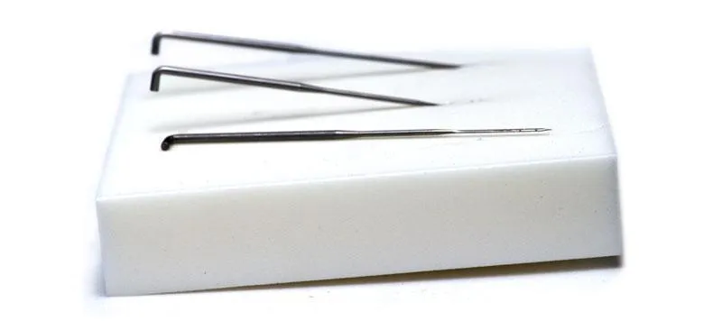 A set of felting needles, Three sizes for about 5 US$ - including a small block of foam, enough to make a few foam poppers