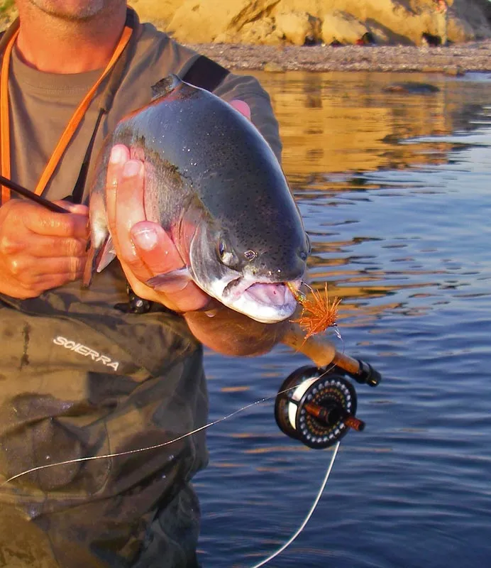 This sea run rainbow took the Terrible Muddler fished in the surface
