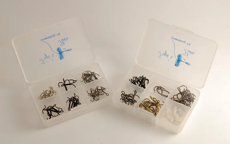 Small dry fly boxes like these are very practical for storing your tube hooks and junction tubes.