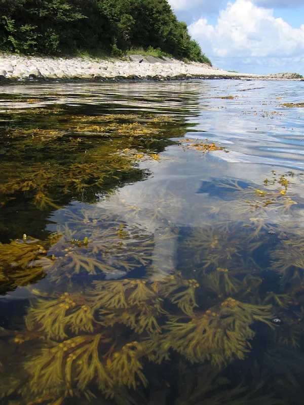 Here the angle and position of the camera offers both the reflection and a look into the water