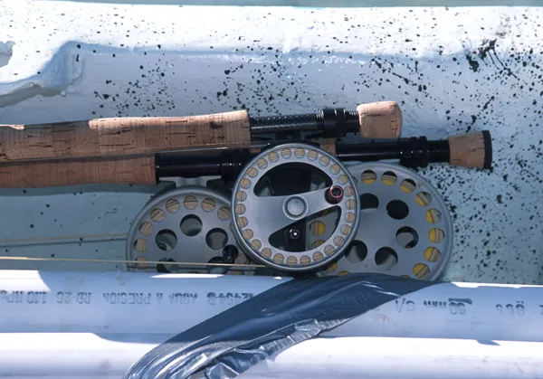 Rods piled up in a bunch like this in a boat is an accident wating to happen. The tubes you see below are actually the rod holders on that particlular boat, and when not in use the rods would rest in them.