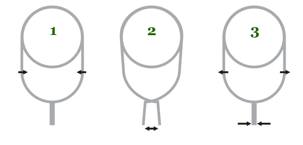 The simple "English" style pliers. 1) press, 2) jaws open, 3) let go and jaws close.