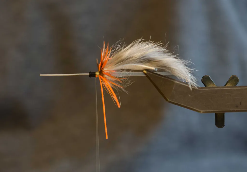 Bend the front part of the rubber legs back and tie them down. Cut the tube and burn a small collar in the front, leaving space for the muddler head.