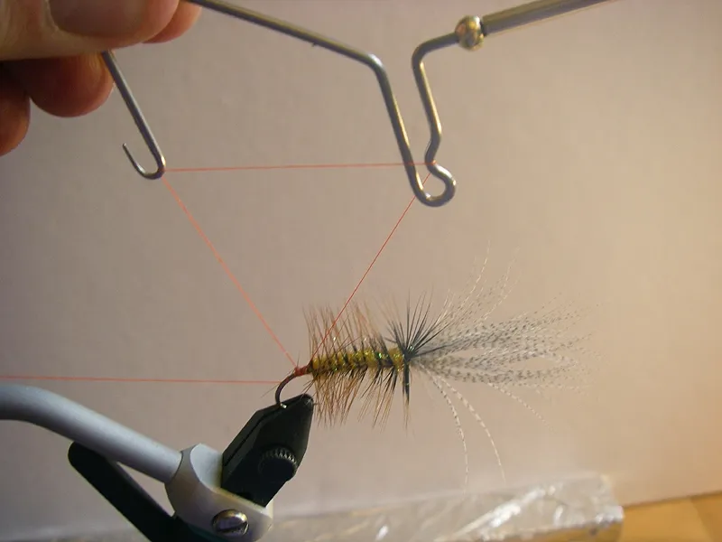 Trim the feather and whip finish over the rear of the fly. Cut thread and varnish over the "head"