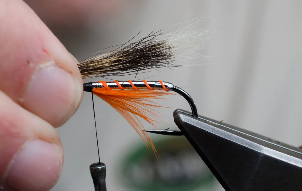 Cut a small bunch of squirrel. Don't make it too thick. About the hook wire thickness or a bit more when compressed hard. Measure the length to about 1½ times the shank length.