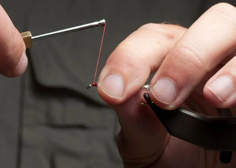 Tie down the fibers to form a head and a "hackle"
