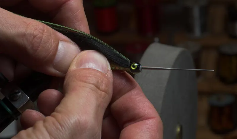 Once the epoxy is applied, remove the fly from the vice, add a hook and let the epoxy cure in a rotor
