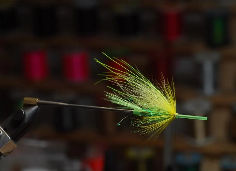 When the hackle has been turned 3-4 times, it's tied down and the but is trimmed off