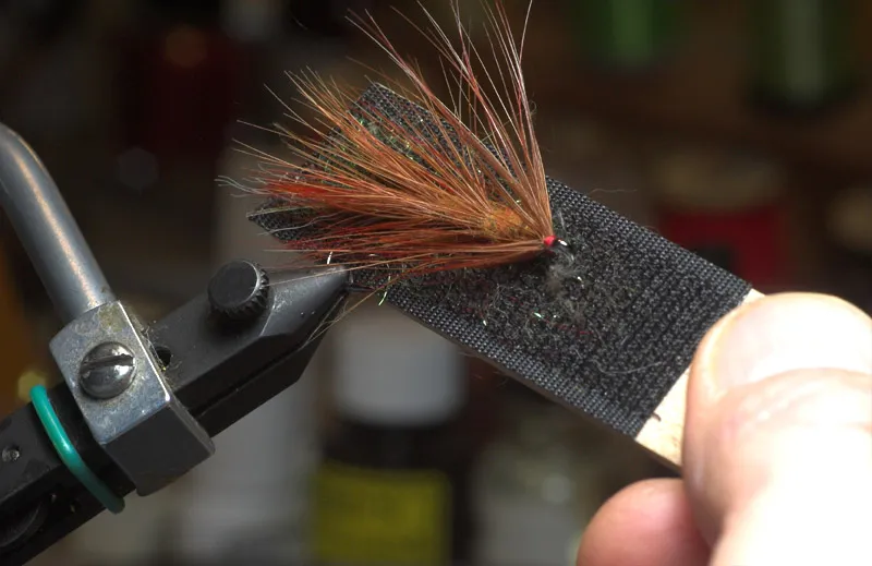 Stroke the fly with a Velcro stick to spread the barbs and tease out the body
