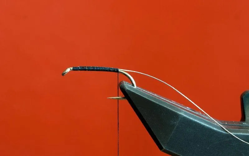 Cover the rib with a smooth layer of thread all the way to the hook bend