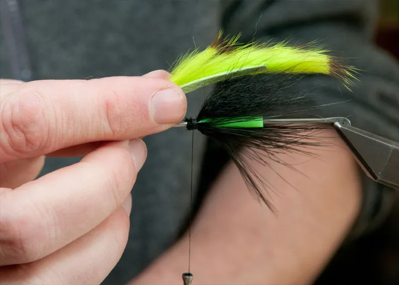 Cut off a piece of zonker strip. About the length of the thick tube or a bit more will be fine