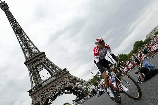 The Eiffel Tower as a backdrop for the last stage of the 2003 Tour de France.