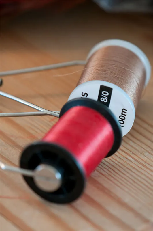 In the foreground an 8/0 Uni-Thread spool and in the background a Veevus ditto. The threads are about the same thickness, but the Veevus thread is more than twice as strong according to Veevus' own specifications