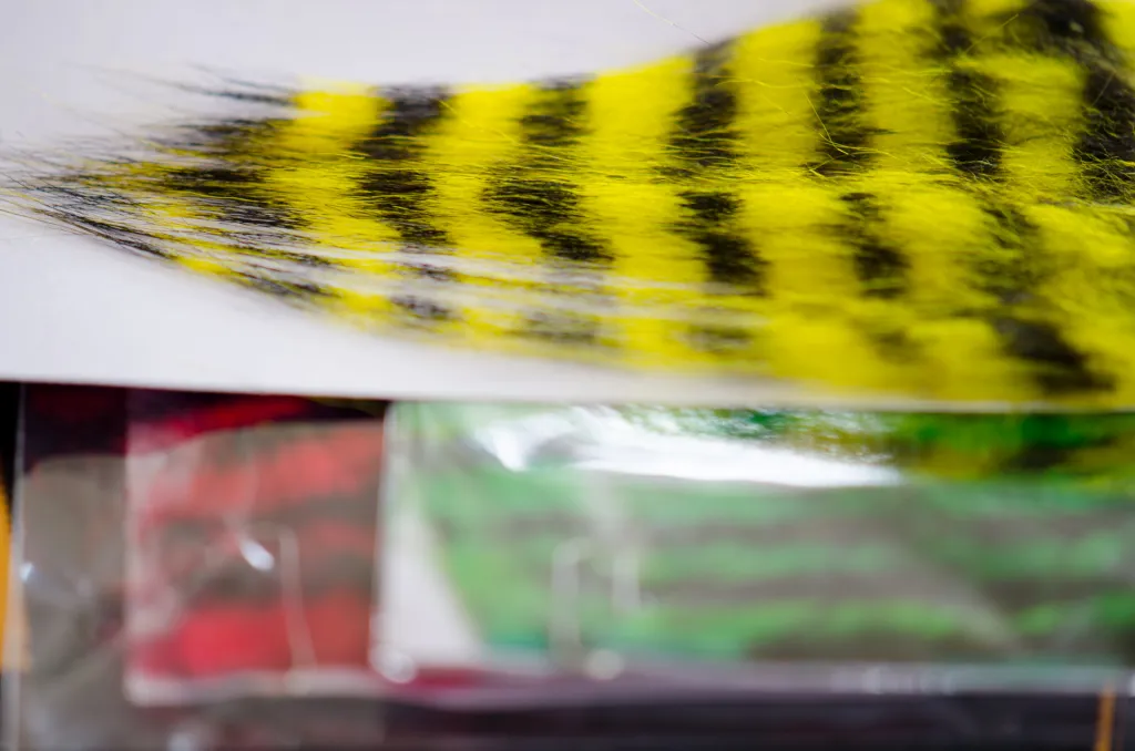 Stripes are hand painted on this dyed goat hair to get a nice and even appearance