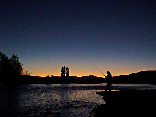 Fishing Brown trouts with speycasting in the Caleufu River.