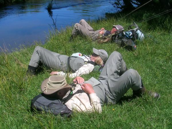 Guide (background) and two clients hard at work. Third client (with camera) did not drink as much single malt the night before.