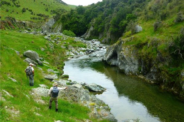 The lovely Maerewhenua River gorge. The large trout were very spooky because of the very clear low water level of early Summer.