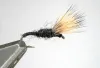 Later my friend and I ran into problems on our favorite stream, when the tiny Caënis dayflies hatched. The trout sipped the fresh emerged flies all over the water - but they rejected all the flies we offered. Then we found a note in a magazine saying, that the fly with the peculiar name - the 'Grey Duster' - should be the right medicine, if it was tied with a parachute hackle.