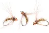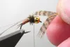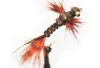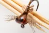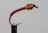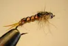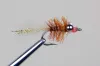 The Pheasant tail nymph is a true classic. The original was tied by Frank Sawyer using only copper thread and phesant tail fibers. This pattern has been elaborated a bit by Charles A.Garwood from North Carolina, and uses peacock herl for the abdomen and regular tying thread.