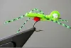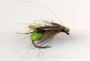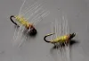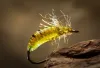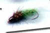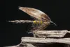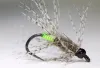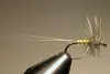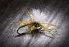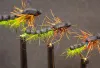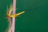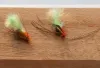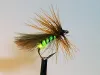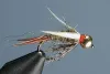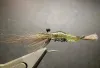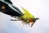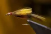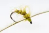 This fly used to be a twist fly like the yellow Twist of Lemon, but it changed and eventually lost the typical twisted body. It has a normal tinsel body and a thorax of peacock herl, but looks much like the Twist of Lemon.