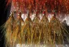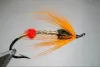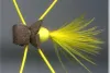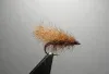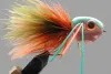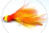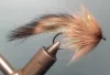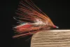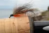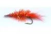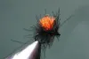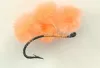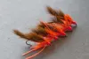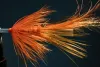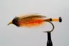 This muddler is tied on a small stainless Mustad hook using orange deer hair, orange dyed grizzly hackle and natural rabbit dubbing with a bit of orange flash mixed in. A small beauty indeed and sooo easy to see at night.