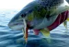A mobile tailed baitfish pattern tied with organza and synthetic fibres