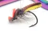 The name and appearance of this fly owes a bit to the New Zealand Mrs. Simpson flies in which a couple of feathers are roofed on each side of the fly. These flies are also known as Killer flies or tied in the Killwell style.