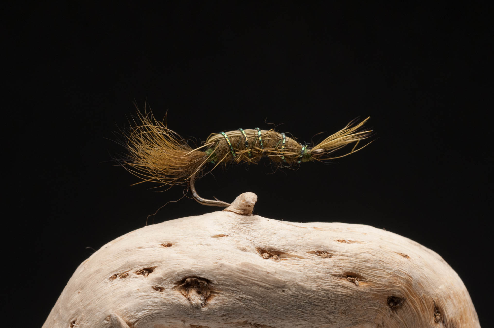 This neat scud I found together with a handful of other dries and nymphs in a small, opaque 8-compartment flybox in my storage. I don't remember where it came from.